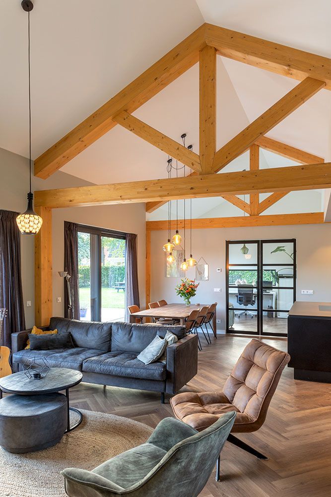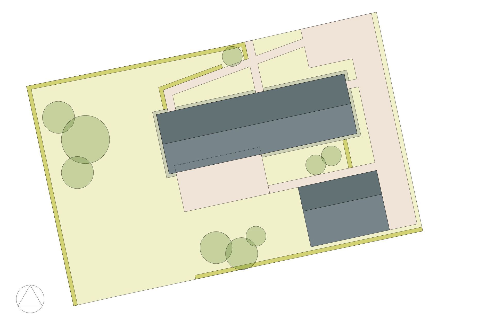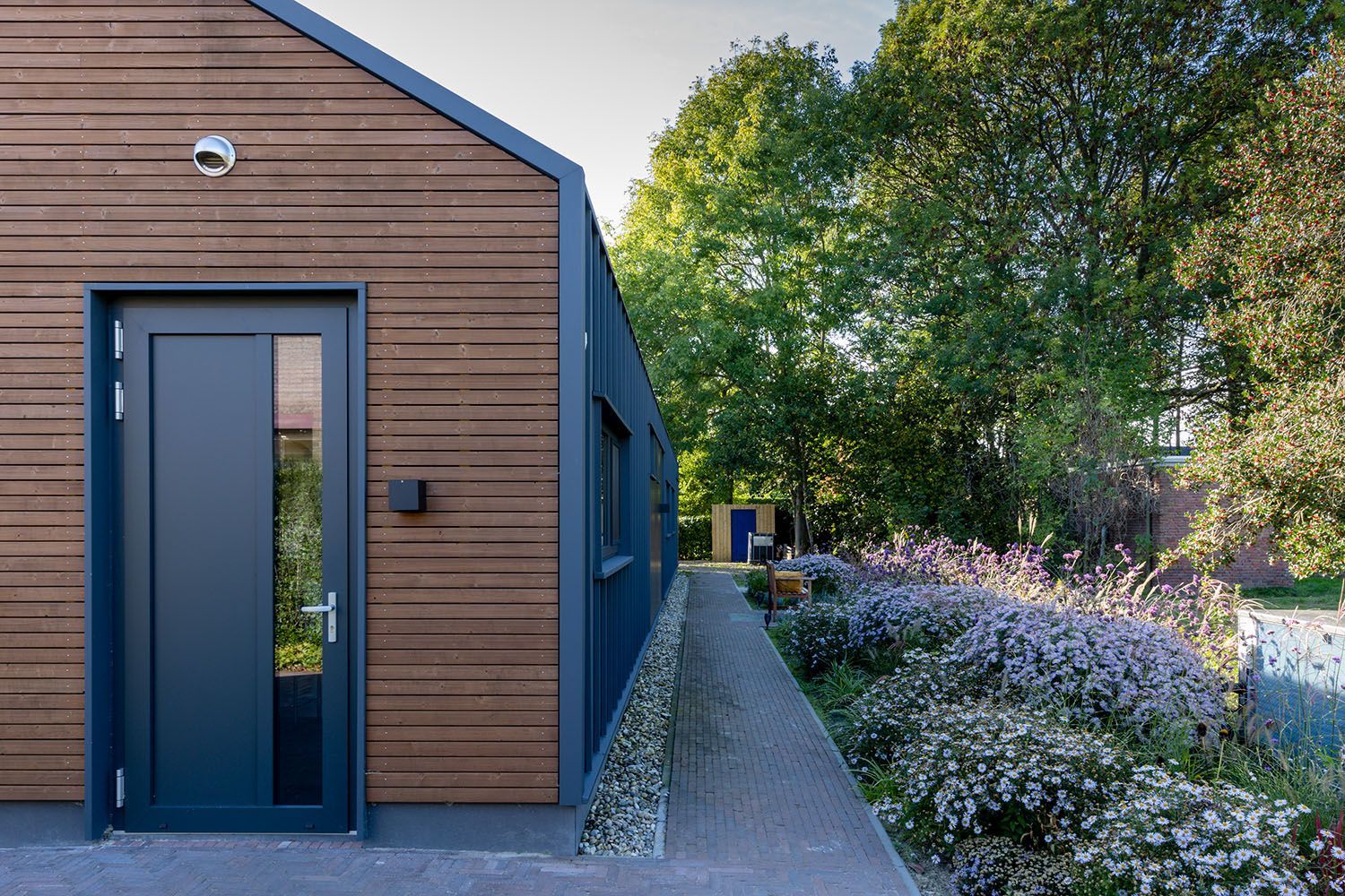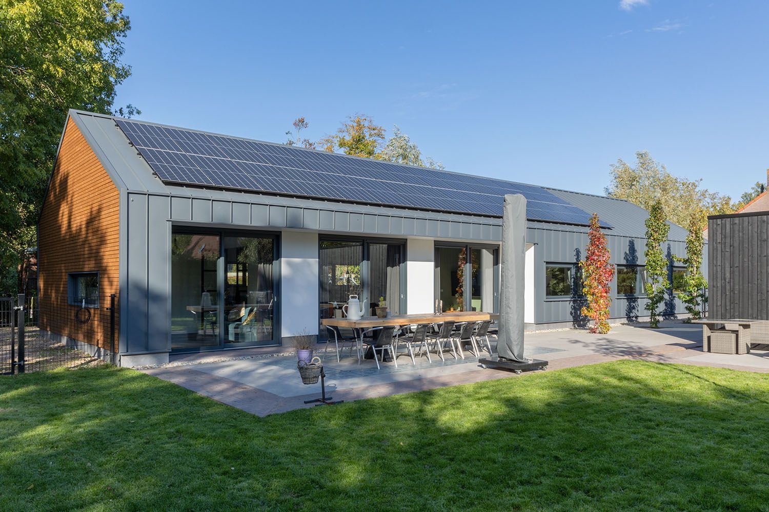 Een riante bouwkavel midden in een bestaande woonwijk in Tolbert werd de prooi voor een gezin uit dezelfde plaats om daar een duurzaam, toekomstbestendig droomhuis te realiseren. De betrekkelijk brede kavel leende zich uitstekend voor een eigenwijze invulling. Het 23 meter lange ‘longhouse’ schermt zo direct het achtererf af van de straatzijde. Die straatzijde is gesloten, alleen ter plekke van de keuken verraadt zich iets van de levendigheid binnen. Aan de tuinzijde is de woonruimte door een overstek verbonden met de zonnige tuin.