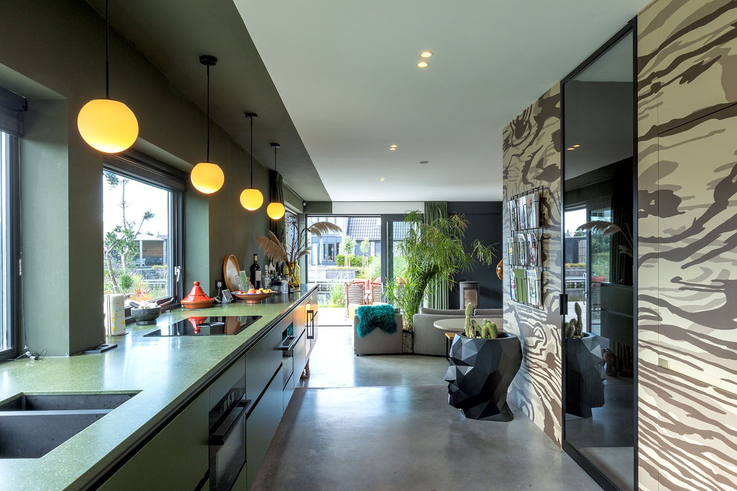 De fijne samenwerking met de initiatiefnemers heeft geleid tot een fijn en licht huis met wat eigenzinnige ingrepen die in de verdere uitwerking van het interieur en de styling nog beter tot hun recht komen. Van begin tot eind waren de bewoners vastberaden dit ‘zelfbouwkavel’ ook letterlijk zelf te bebouwen en tot in de puntjes af te werken. Met de inzet van enkele onderaannemers hebben ze de daad bij het woord gevoegd en er werkelijk een geslaagd thuis van gemaakt met geheel eigen stijl en uitstraling. Het exterieur is sober en verfijnd tegelijk, het interieur uitgesproken en warm. De liefde en aandacht (voor het detail) verbinden binnen en buiten. Deze bewoners vieren het leven en het huis feest mee!