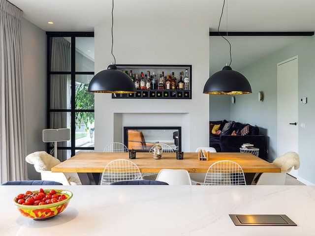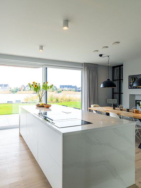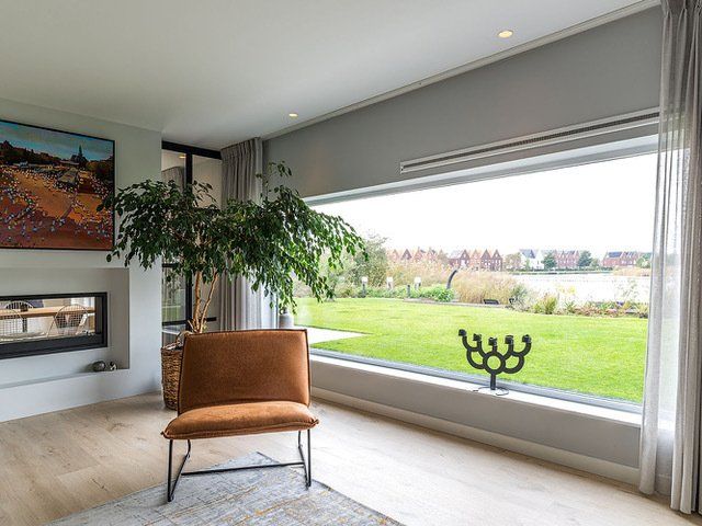 Een gevoel van ‘altijd vakantie’! Dat geeft de woning waar je recht op afrijdt wanneer je het Pleviereneiland in Meerstad op komt. Het weidse uitzicht, de veranda, de tuin, het draagt allemaal bij aan een gevoel van vrijheid en connectie met het water. De woning is geheel levensloopbestendig ontworpen met ruimte voor de (nog) thuiswonende kinderen op de verdieping. De leefruimte op de begane grond is opgedeeld in twee zones, gescheiden door een dubbelzijdige haard.